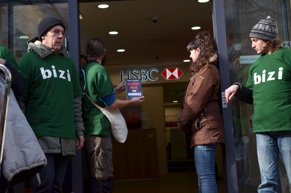 « L’évasion fiscale en France coûte chaque année de 60 à 80 milliards d’euros à l’Etat » a affirmé Jon Palais, porte-parole de Bizi ! « Le financement d’une loi de transition énergétique qui aurait un minimum d’ambition nécessiterait 30 à 40 milliards d’euros. C’est dire l’importance de ces chiffres et les conséquences catastrophiques de ce phénomène criminel, qui assèche les finances publiques. HSBC permet aux plus riches de voler la collectivité au détriment des crèches, des logements, de l’école, de la santé ou des transports publics. Bref, c’est Robin des Bois à l’envers, qui vole aux pauvres pour que les riches aient encore plus. »